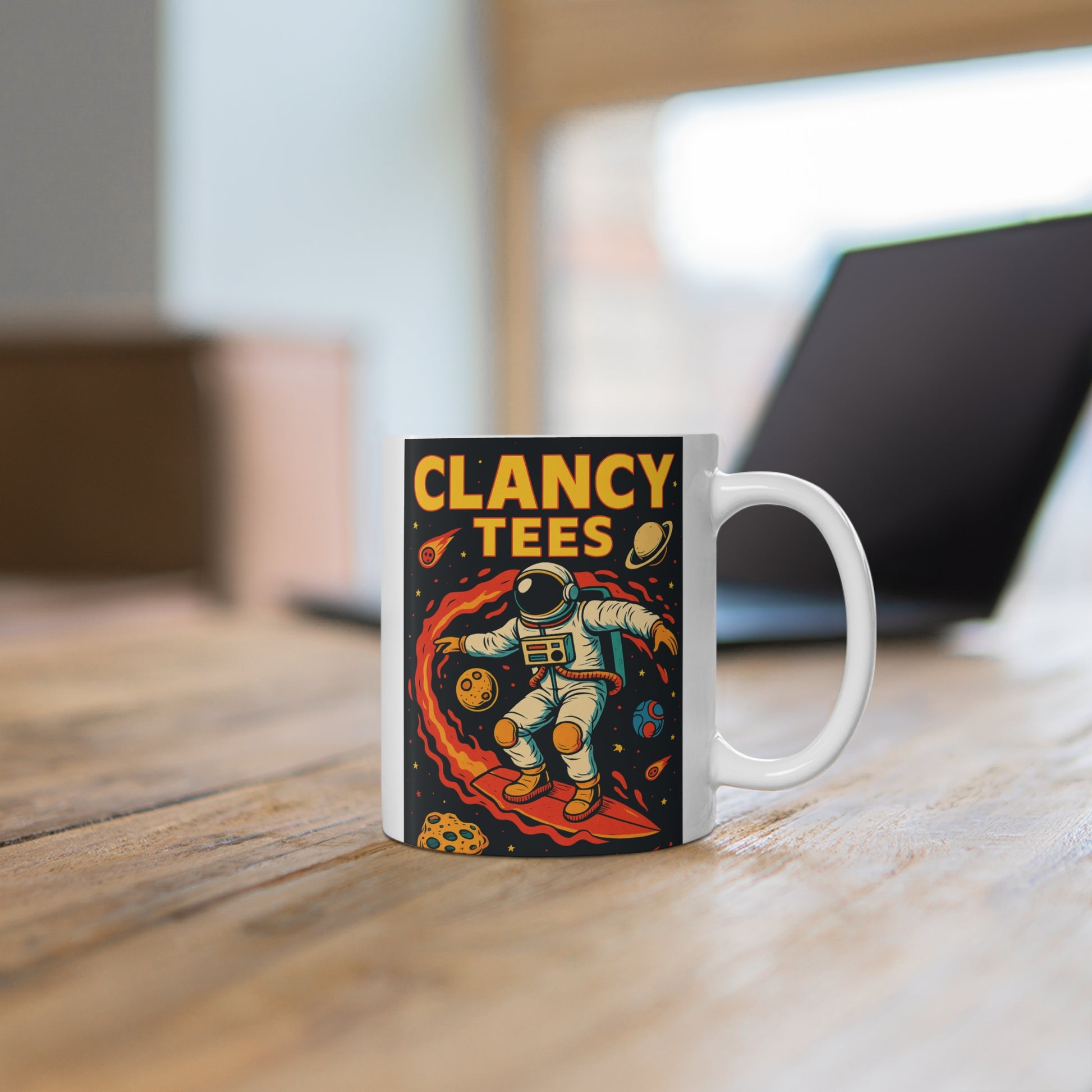 Astronaut Cosmic Coffee Mug Clancy Tees Space Explorer Ceramic Mug Galaxy Surfer Gift For Stargazers